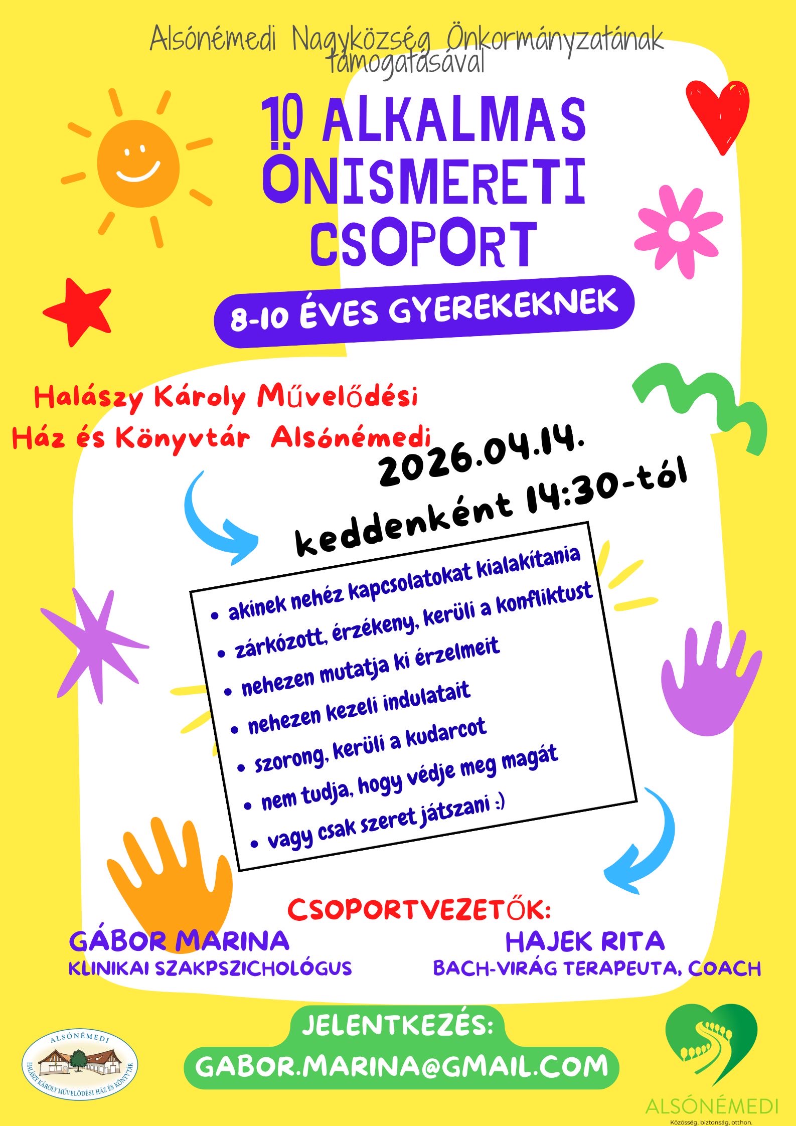 | Önismereti csoport 8-10 éves gyerekeknek (10 alkalom) | 2026-04-14 | Megtekintés |